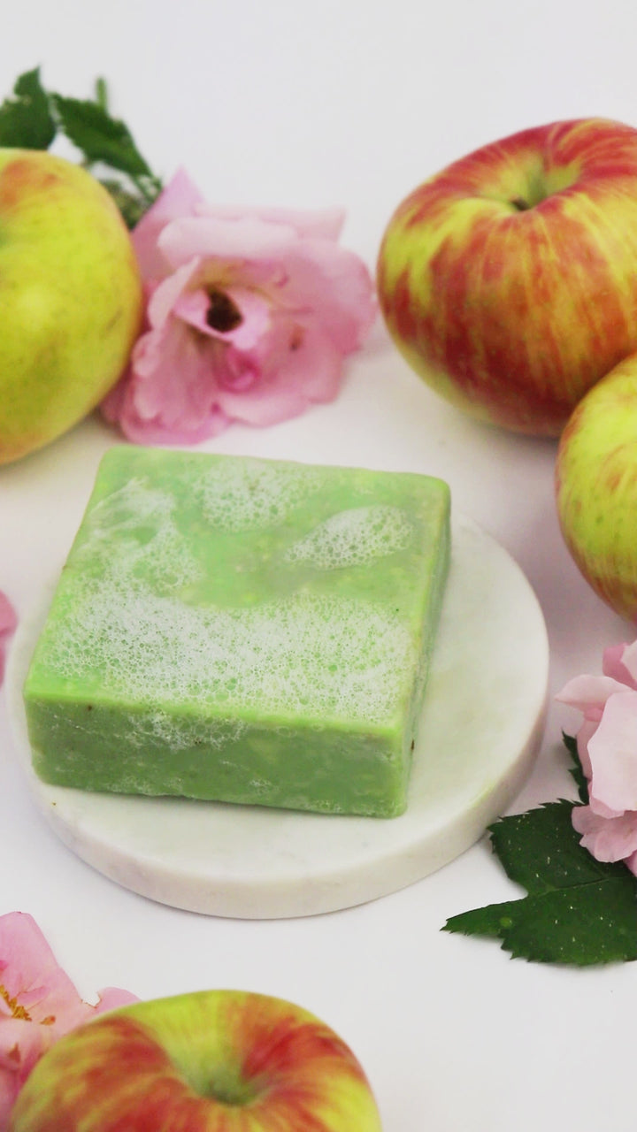 Ingredients: Olive Oil, Soybean Oil, Coconut Oil, Canola Oil, Sunflower Oil, Organic Shea Butter, Water, Sodium Hydroxide (Lye), Sea Salt, Rose Petals, Natural Fragrance