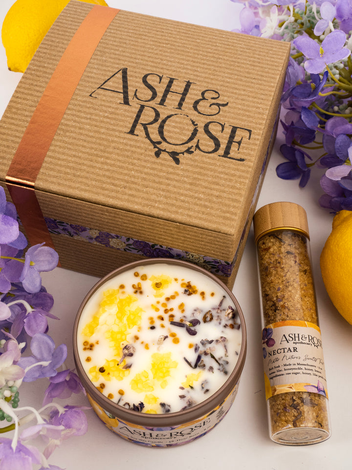Our Nectar fragrance features notes of lilac, lemon, and honey. If you're looking for a luxury, artisan gift, you've found it!