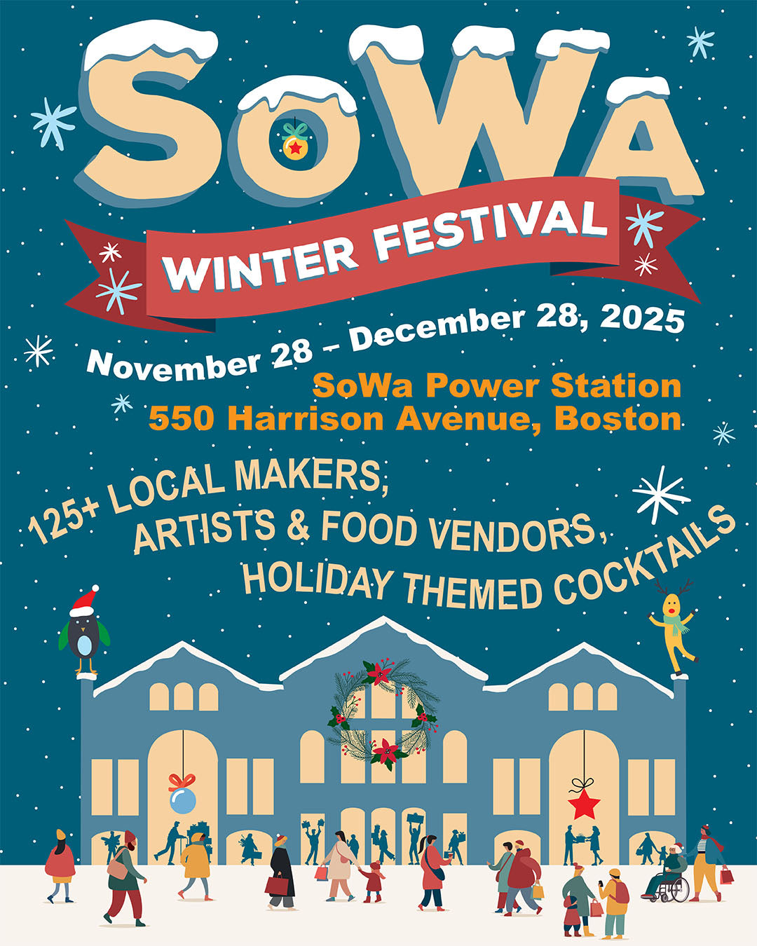 Join us for one of Boston’s most magical holiday traditions — the SoWa Winter Festival! Discover over 125 local vendors offering handmade art, holiday gifts, specialty foods, and festive cocktails inside the beautiful and warm SoWa Power Station.