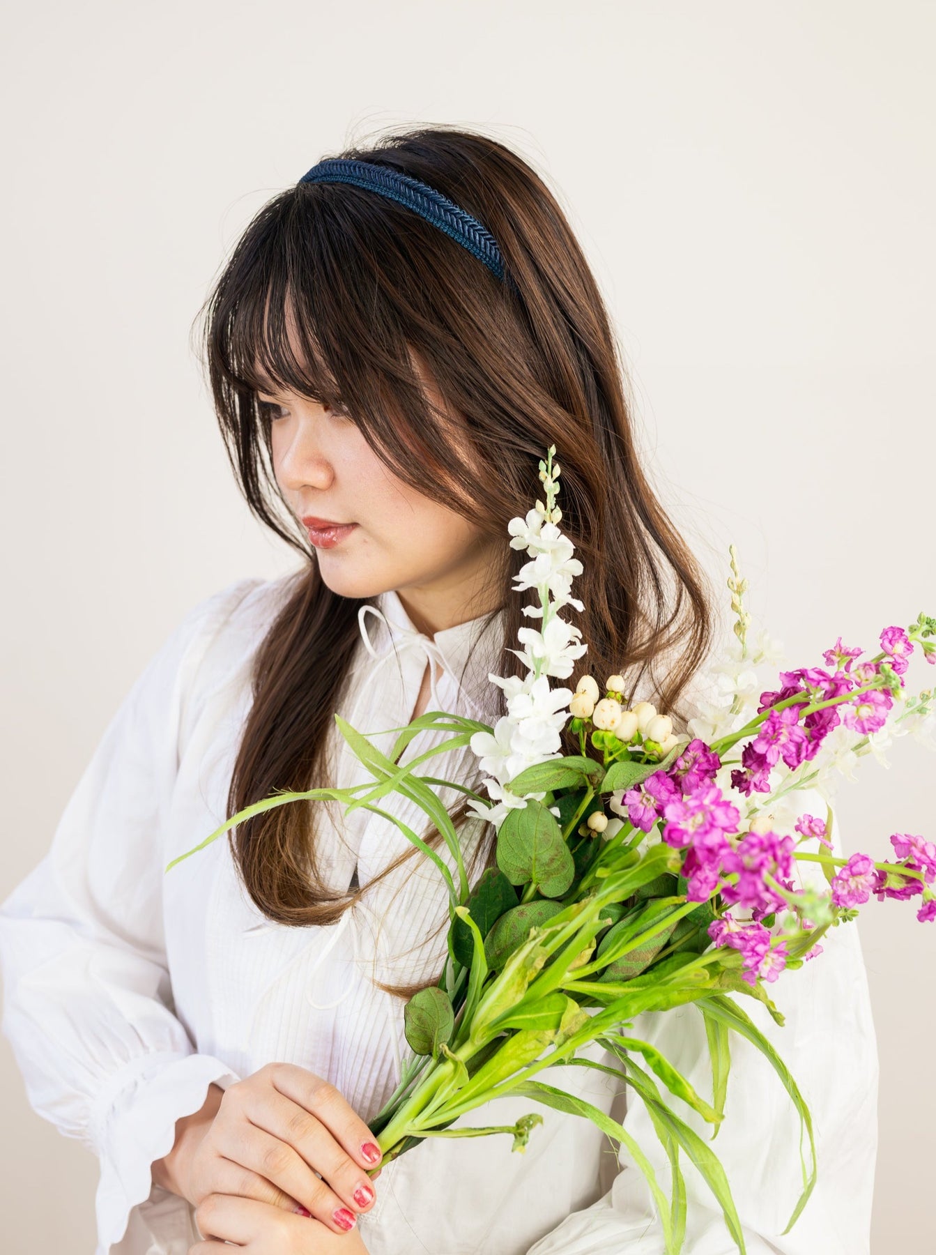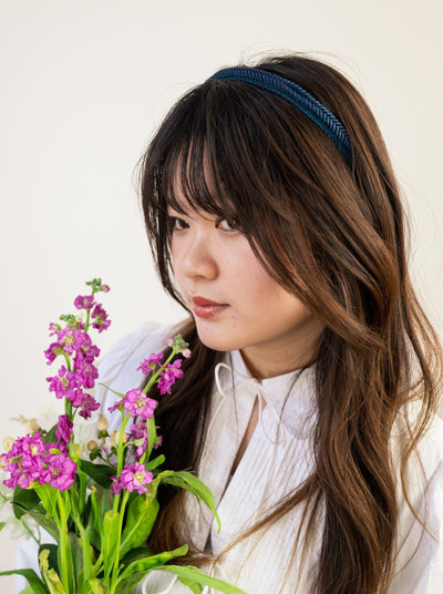 This sweet and simple skinny navy headband features unexpectedly opulent materials upon further inspection! We don't *really* do minimalism here at Ash & Rose. This deceptively simple hair accessory has serious range, complimenting your nautical summer style, or capping off your regency-inspired evening look.